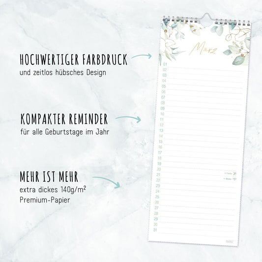 Häfft Verlag Geburtstagsplaner Kompakt [Blattgold] Wandkalender immerwährend, 12 Monate