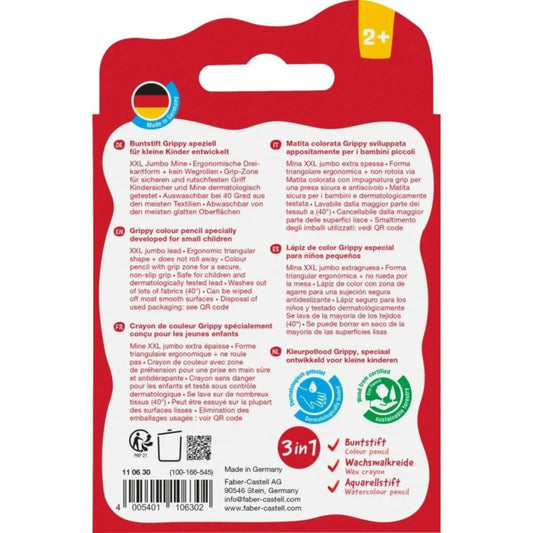 Faber-Castell Buntstift Grippy 6er Set mit Spitzer und weicher XXL Jumbomine