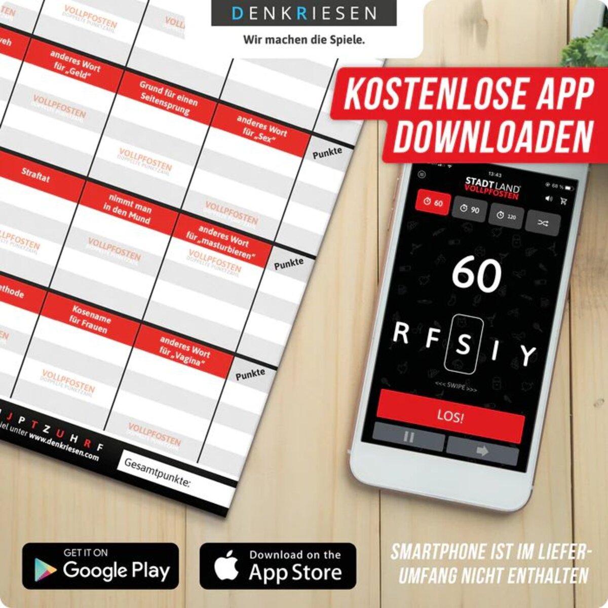 Die offizielle Rotlicht-Edition der kreativen Stadt-land-Fluss Variante Stadt, Land, Vollpfosten - Spielblock im DIN A4-Format - besonders praktisch und handlich im Vergleich zu den großen Blöcken - ideales Spiel für einen Junggesellenabschied oder ein tolles Geschenk - 32 lustige, versaute und unanständige Kategorien bringen jeden Hobbydenker ins Schwitzen - Spaß garantiert! Spielablauf: Jeder Spieler erhält eine Seite des DIN-A4 Blockes und legt diese vor sich hin. Es wird eine Zeit pro Durchgang ausgemacht (wir empfehlen 2 Minuten als Begrenzung). Die innovative Buchstabenleiste hilft bei der Ermittlung des Buchstabens. Dann gilt es so schnell wie möglich alle Begriffe einzutragen. Pro Runde sind 8 Begriffe gesucht.