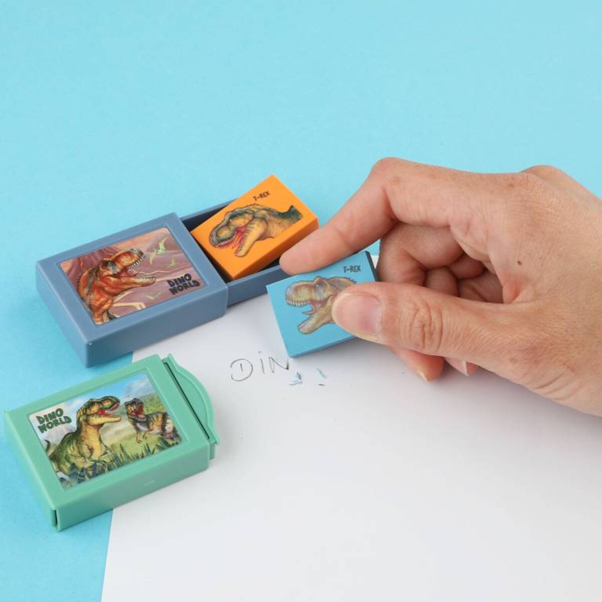 Abrakadabra! Die Radiererbox von Dino World hat einen coolen integrierten Trick: Öffnet man das Schubfach normal, erscheint es leer. Schiebt man aber die linke Seitenwand ein bisschen hoch, liegt beim Öffnen plötzlich ein farbiger Radierer mit Dino-Motiv in der Schachtel. In zwei Farben erhältlich: Grün und Blau.