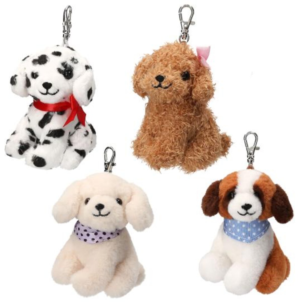 Wau, wie süß sind die kleinen Plüsch-Hunde mit Metall-Karabiner zum Anhängen an den Schlüssel oder die Tasche!