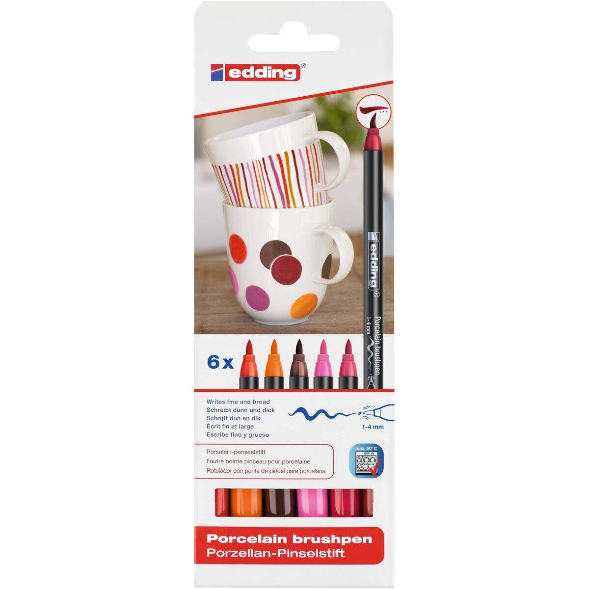 edding 4200 Porzellan Brushpen 1-4mm, 6 Stück, warme Farben
