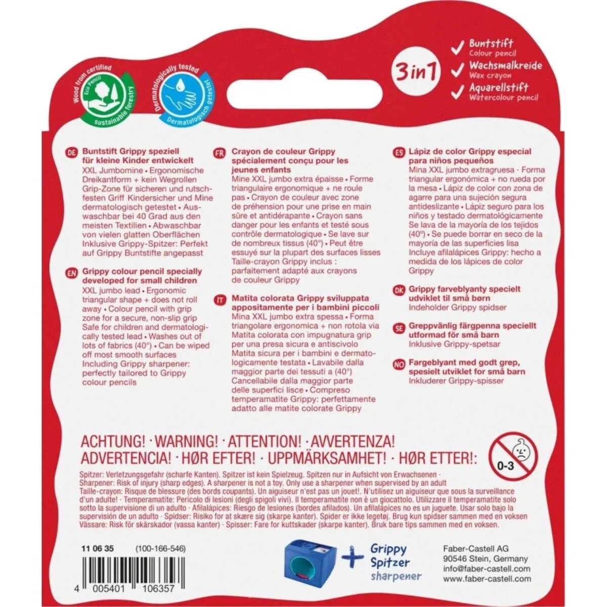- Inklusive Grippy-Spitzer: Perfekt auf Grippy Buntstifte angepasst. Mit Sichherheitsschraube, Schneidschutz und akustischem Klickgeräusch für sicheres Spitzen