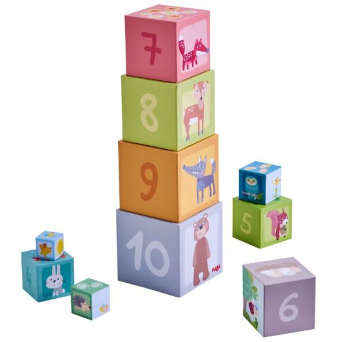 - zehn niedliche Waldfreunde grüßen von den HABA Stapelwürfeln