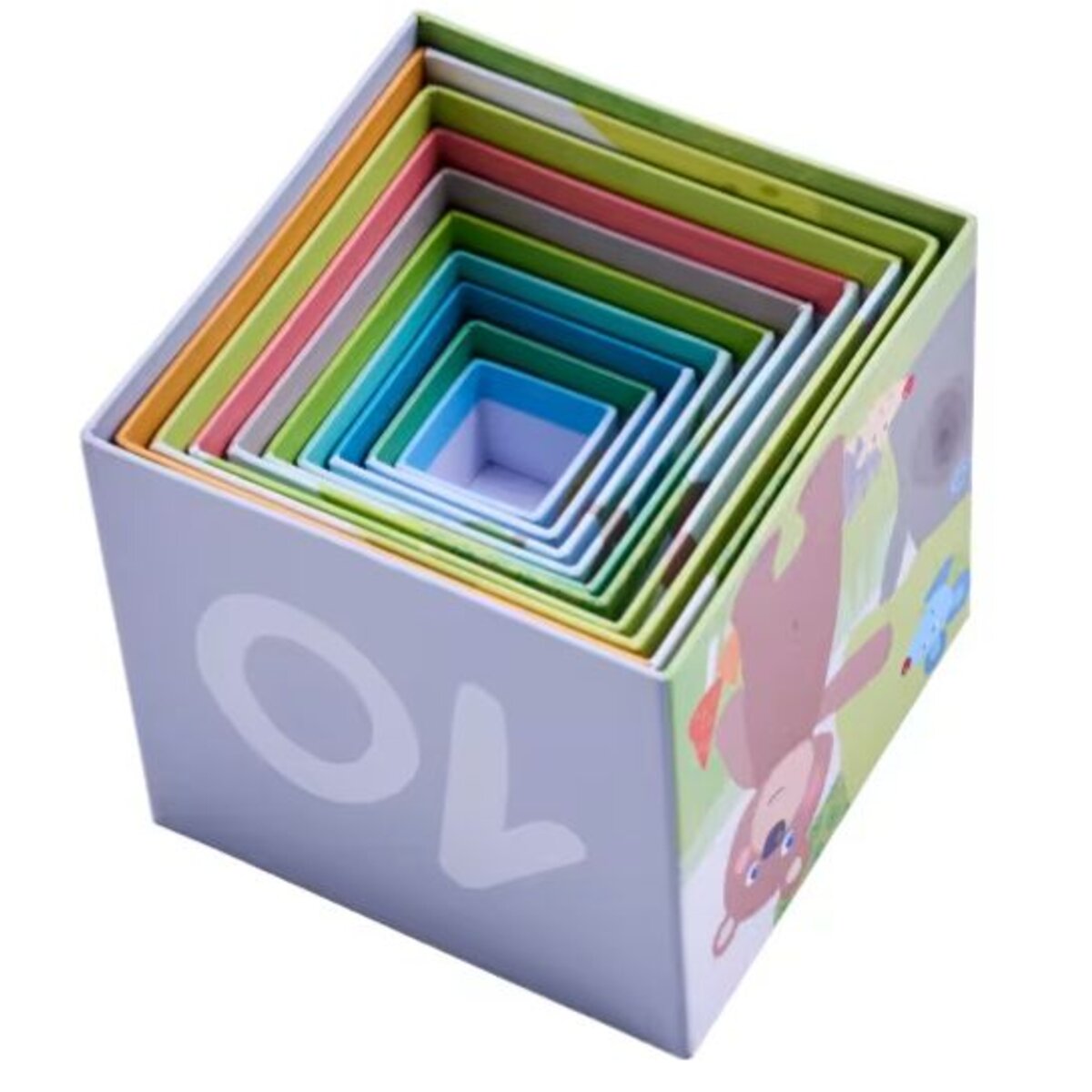 Inhalt: 10 unterschiedlich große Würfel zum Stapeln.