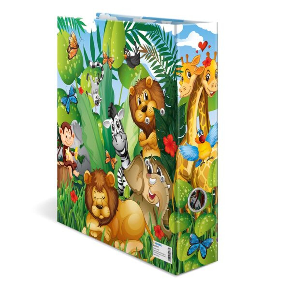 Bedruckter Ringbuchordner im bunten Kinder Design (Rückenbreite 70 mm) · Griffloch, Radoösen, Hebelmechanik und Niederhalter aus solidem Metall · Für eine optimale Aufbewahrung von Dokumenten, Unterlagen und Akten · Perfekt geeignet für die Schule, Uni, Büro, Kindergarten oder im Haushalt · Lieferumfang: 1 x HERMA Motivordner (Länge/Breite/Höhe: 28,5 x 7 x 31,5 cm) - Dschungel