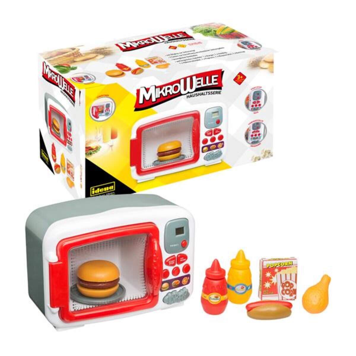 Die Idena Mikrowelle ist ein realistisches Spielzeug, das Kindern ein interaktives Rollenspiel-Erlebnis bietet. Mit Licht- und Soundeffekten sowie einem Display zur Zeitanzeige und 3 Tasten zur Einstellung verschiedener Zeitvorgaben können Kinder ihre Lieblings-Speisen wie Burger, Hotdog, Hühnerschenkel und Popcorn schnell "zubereiten". Die Mikrowelle hat eine Größe von ca. 27 x 19 x 16 cm, einen beweglichen Drehteller und wird mit Batterien betrieben. Mayonnaise und Ketchup sind im Lieferumfang enthalten. Mit der Idena Mikrowelle fördern Kinder ihre Kreativität und sozialen Fähigkeiten im fantasievollen Rollenspiel.