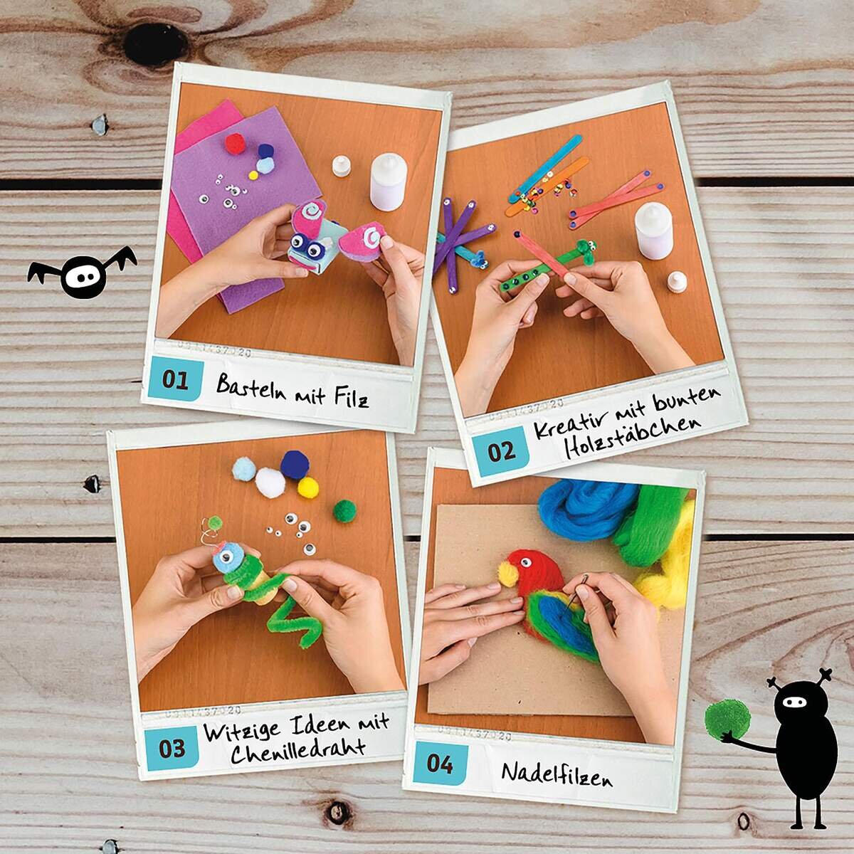 Geniale DIY-Projekte für Kinder ab 6 Jahren: Mit der „AllesKönnerKiste Bastelbox“ unzählige Bastelprojekte ausführen Ausführliche Anleitung: Die Grundtechniken werden in der farbigen Anleitung anschaulich erklärt. Jede Menge Bastelprojekte mit Schritt-für-Schritt Anleitung gibt es auf kosmos.de. Für Einsteiger geeignet: Die abwechslungsreichen bunten Materialien können angeleitet oder frei in Meisterwerke verwandelt werden und sind so bereits für jüngere Kinder geeignet Ideal für Geschwister: In jeder Grundtechnik Bastelideen ab 6 Jahren, 8 Jahren und weitere Tipps für die Hinzunahme von Recycling-Materialien Freude am Lernen: Durch die AllesKönnerKiste „Meine große Bastelbox“ werden Kreativität, feinmotorische Fähigkeiten und Materialkunde geschult Hochwertiges Material: 8 Bögen Filz, Filzwolle in fünf Farben, Filznadel, Pompons, Pailletten, Bastelhölzer in sechs Farben, 10 Stränge Chenilledraht, Wackelaugen in drei Farben, Anleitung Das ideale Geschenk-Set: Die AllesKönnerKisten enthalten alle Materialien, um sofort loszulegen. Ein ideales Geschenk zum Kindergeburtstag, Einschulung oder Weihnachten und perfekt geeignet für gemeinsame Bastelnachmittage