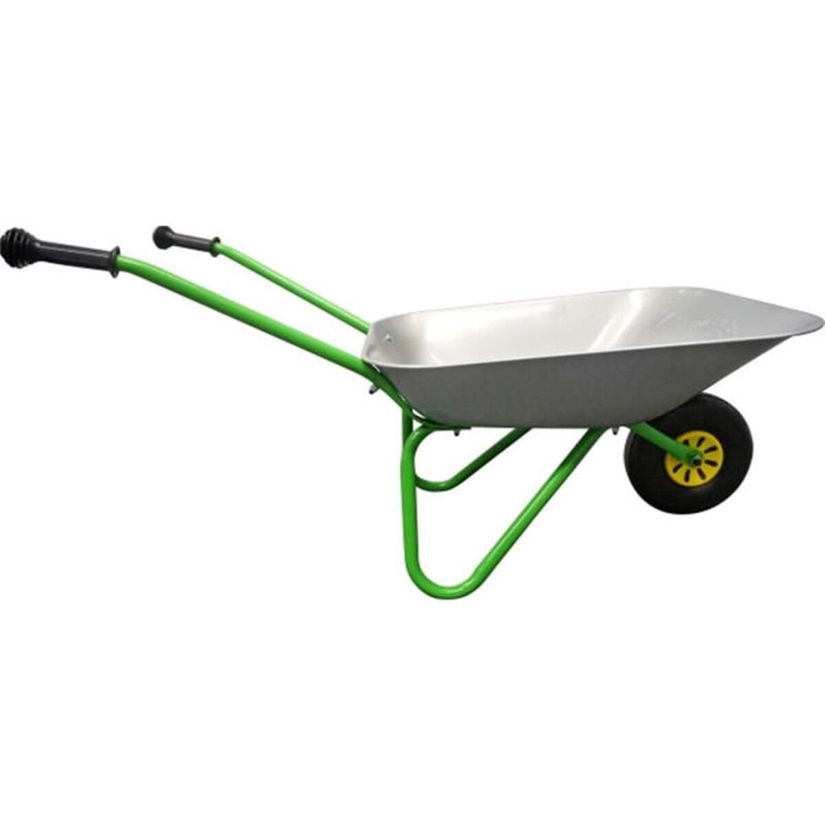 Schubkarre-Metall mit Kunststoffrad und Gummigriffe. Robuste Kinderschubkarre mit Metallwanne und Metallgestell. Schubkarre ist bis 25 Kilogramm belastbar.