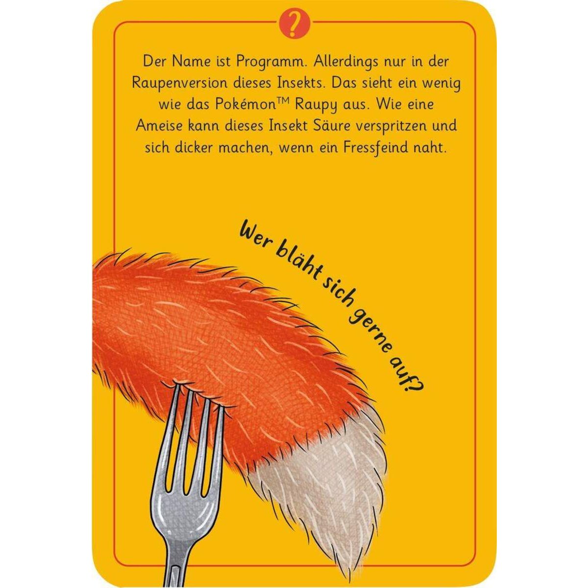 Die Expedition Natur Tierrätsel bieten eine etwas andere Art der Wissensvermittlung. Humorvoll und leicht wird Naturwissen für Kinder ab 8 Jahren vermittelt. Knobeln und lernen – mit diesen Rätseln können Kinder ihr Wissen über Tiere testen und gleichzeitig erweitern. Nach einer rätselhaften Beschreibung eines Tieres kann die Illustration vielleicht noch einen kleinen Hinweis geben. Welches Tier steckt wohl dahinter? Ein Blick auf die Rückseite verrät es und gibt noch zusätzliche Informationen über das fantastische Tier.