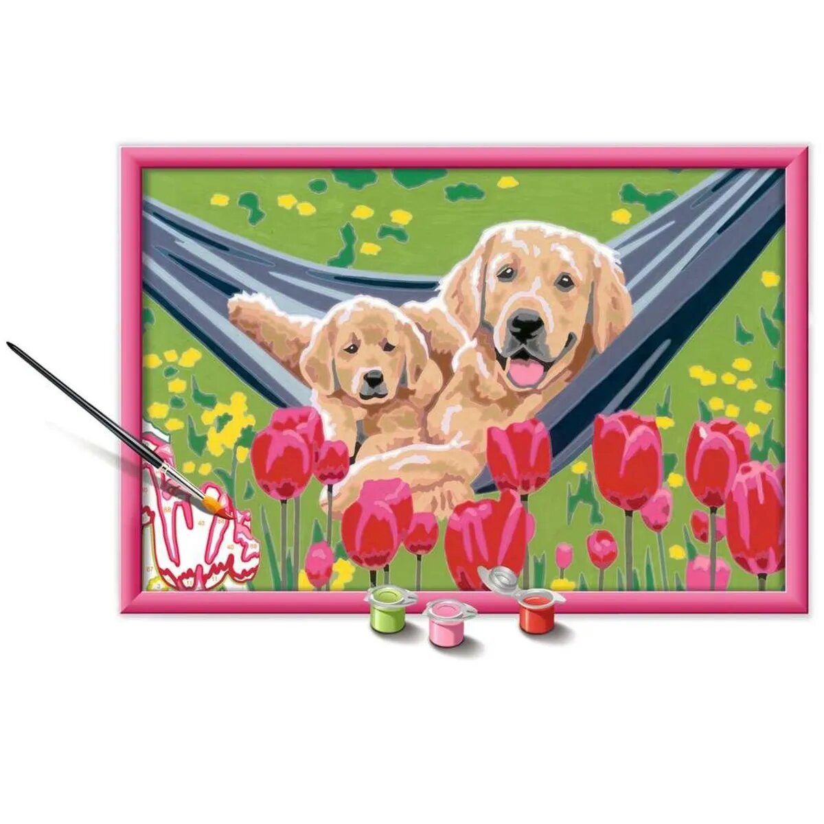 Dieses Komplettset enthält eine Maltafel (13 x 18 cm) mit Malfeldern in altersgerechter Größe, 20 Acrylfarben in wiederverschließbaren Näpfchen, einen Qualitätspinsel und einen passenden, hochwertigen Bilderrahmen. Anleitung und Vorlageblatt sind nützliche Helfer beim Malen.Die hochwertigen Acrylfarben trocknen schnell, sind auf Wasserbasis, geruchsneutral und benötigen keinen Pinselreiniger.