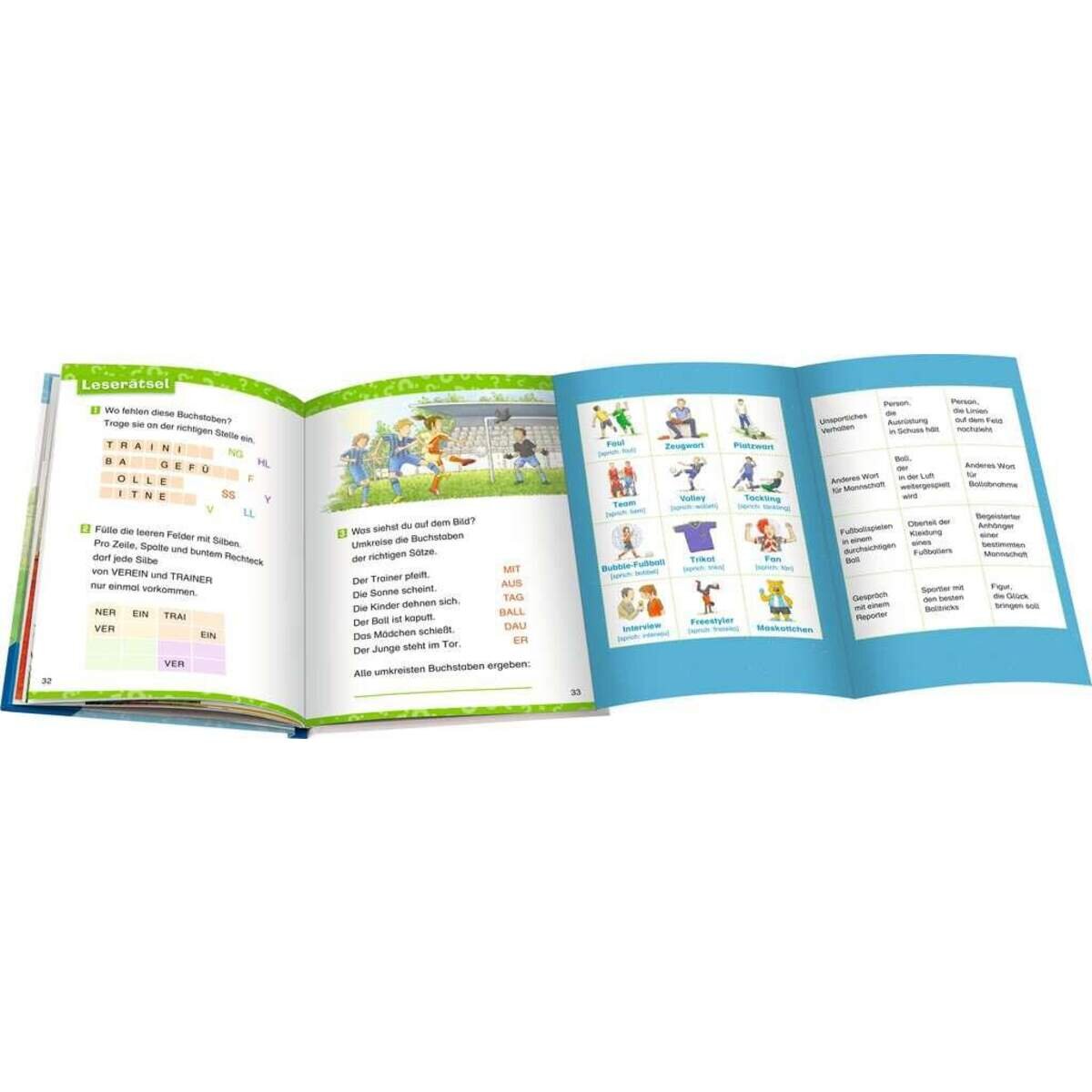 Fußball begeistert nicht nur im Fernsehen, sondern auch in der Freizeit – egal ob im Verein oder auf der Wiese. Welche Schusstechnik ist die beste? Wie werde ich zum Fußballstar? Welche ist die beste Mannschaft der Welt? All das finden Erstleser ab dem 2. Lesejahr mit diesem Band selbstständig heraus. Einfache, kurze Texte machen das Selberlesen kinderleicht. Und dank abwechslungsreicher Buchstaben- und Kreuzworträtsel, Suchaufgaben, Sudokus und Stickern gelingt das Lesenüben spielerisch.