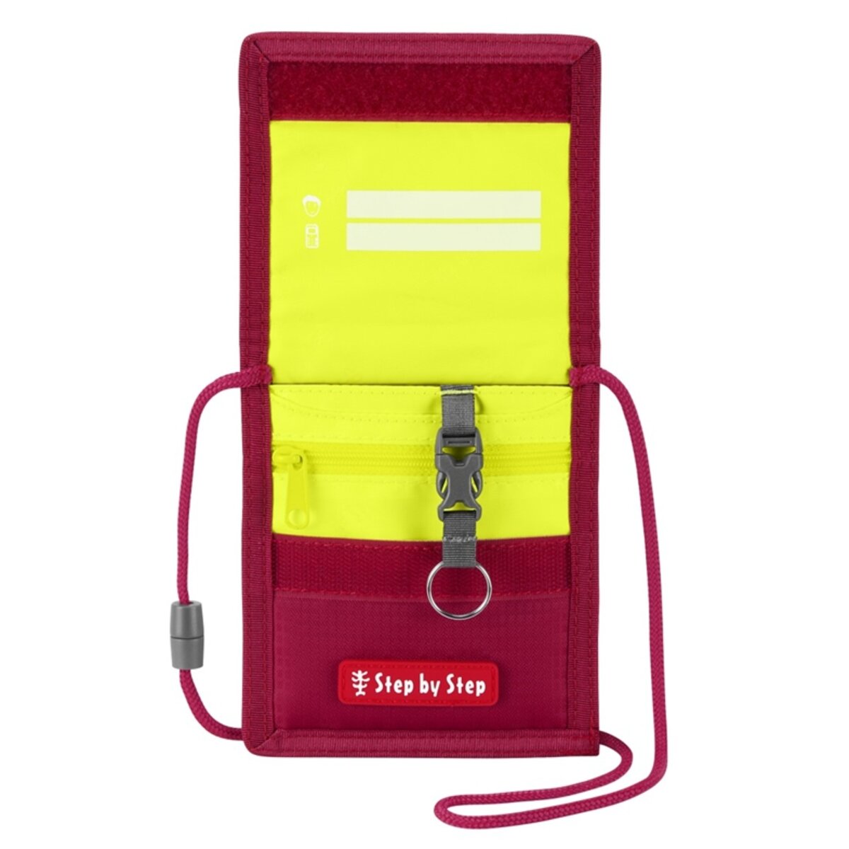 Überblick Klarsichtfach für Busfahrkarte oder Schülerausweis Kleingeldfach mit Reißverschluss Adress-/Namensfeld Klettverschluss Abnehmbarer Schlüsselringbefestigung Umhängeband mit Sicherheitsverschluss Lieferumfang 1 Brustbeutel