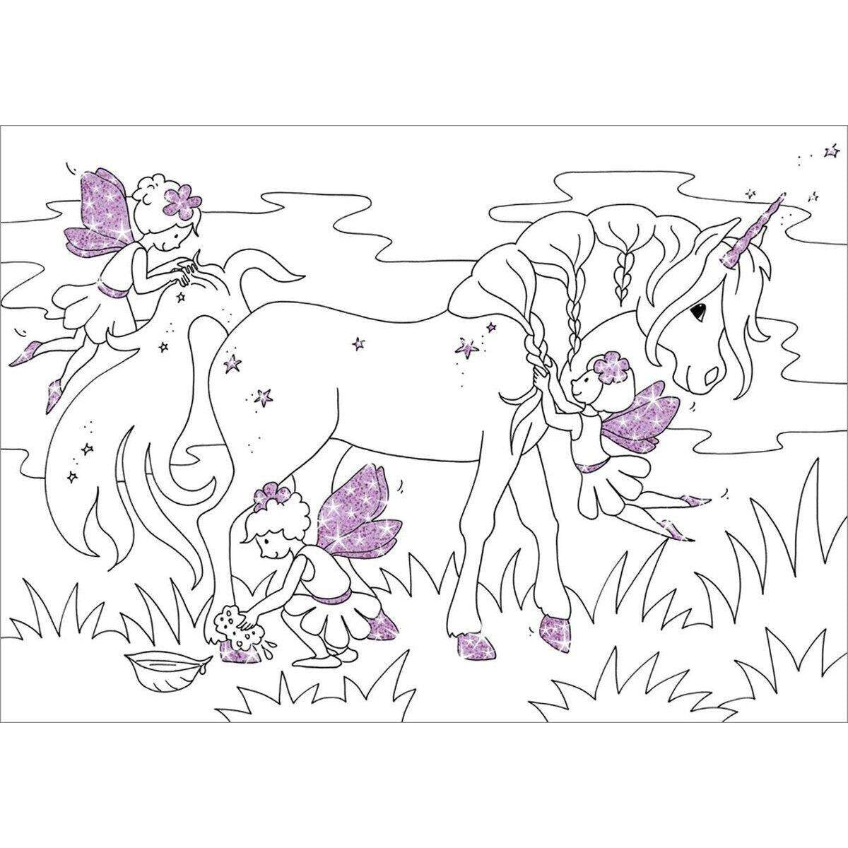 Magische Einhörner und bezaubernde Elfen – 32 zauberhafte Motive laden zum Ausmalen ein.