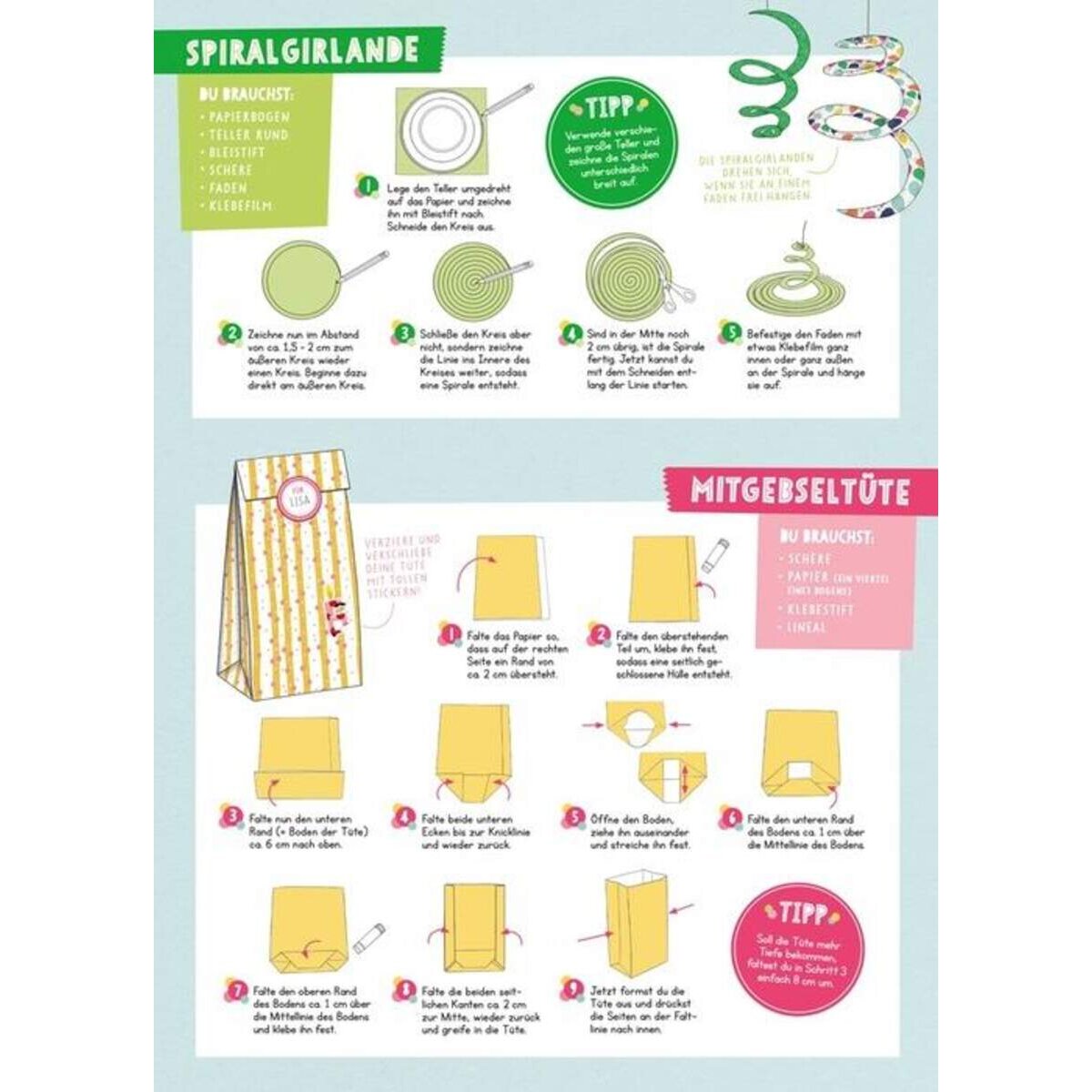 Geburtstagskrone, Girlanden, Tischdeko: Diese Geburtstagsparty wird großartig! In dem Bastelbuch steckt alles, was es für einen gelungenen Kindergeburtstag braucht. Mit den einfachen Schritt-für-Schritt-Anleitungen können Kinder ab 6 Jahren bis zu acht originelle Einladungen, witzige Deko oder kleine lustige Tröten selbst basteln. Damit sie gleich loslegen können, enthält die Papierwerkstatt nicht nur kreative Ideen, sondern auch eine Doppelseite mit Stickern und 8 Bastelpapieren, die auf beiden Seiten mit verschiedenen Motiven bunt bedruckt sind. Das macht Spaß und steigert die Vorfreude auf das große Fest!