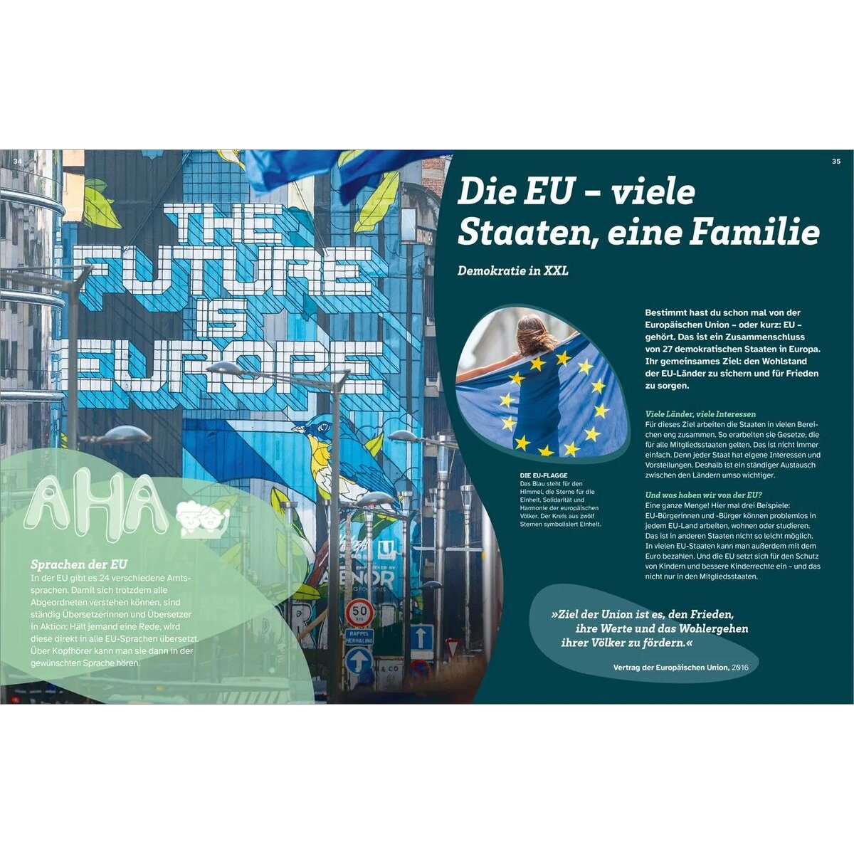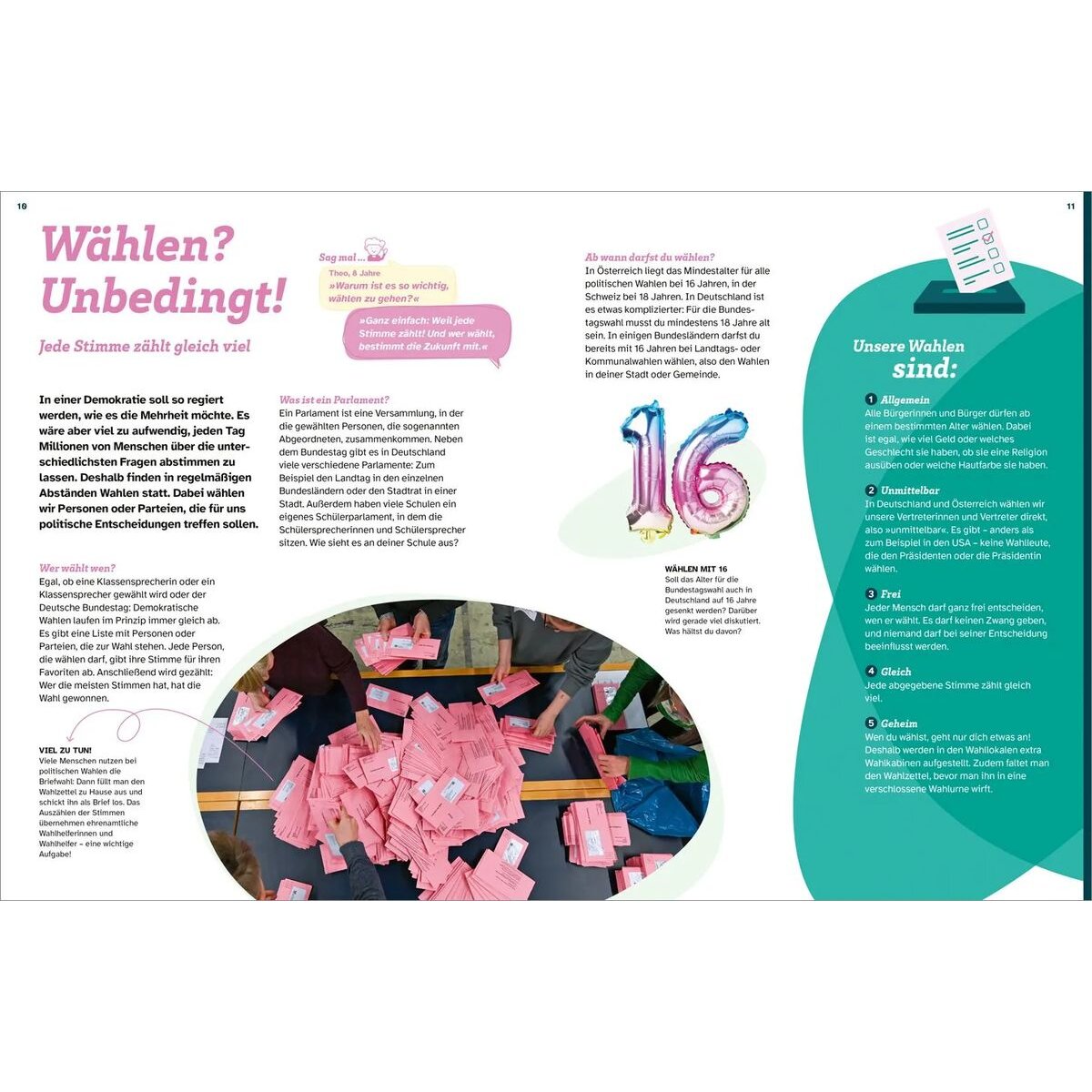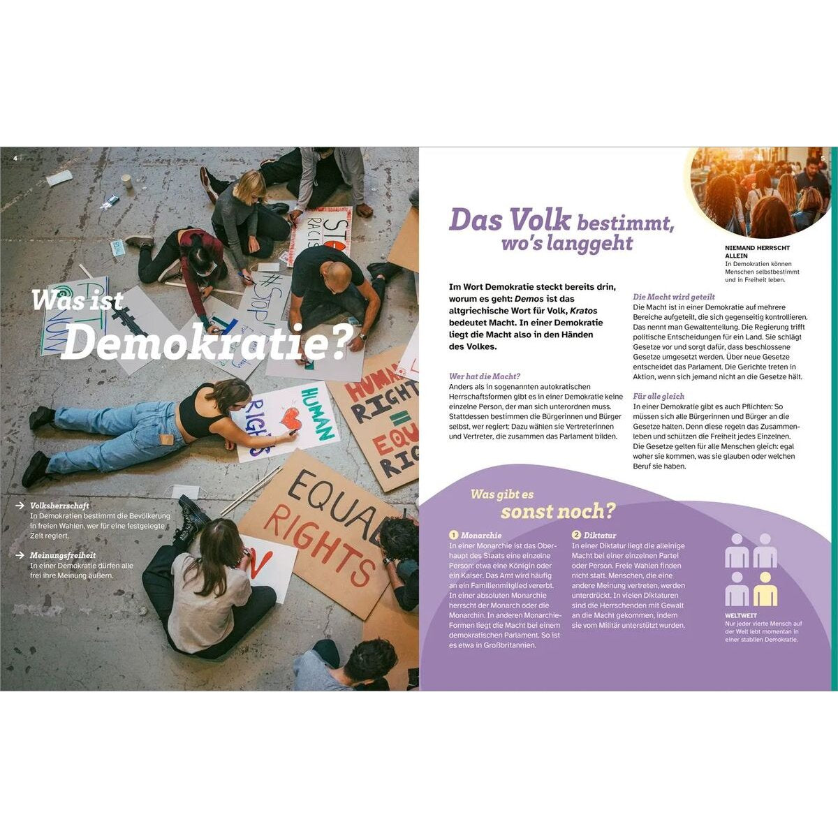 Es ist eines der wichtigsten Themen des Jahres: Demokratie. Übersetzt bedeutet es so viel wie „Volksherrschaft”. Das aktive Mitgestalten ist also ausdrücklich erwünscht. Aber wer ist eigentlich „das Volk“? Wie funktioniert das genau mit der „Volksherrschaft“? Wen und was wählen wir? Können und dürfen wirklich alle mitbestimmen? Demokratische Entscheidungen finden an vielen Orten statt: Die Leserinnen und Leser gehen mit zur Wahl, zum Bundestag, zur EU und auch zu einem Kindersportteam, das über einen Ausflug abstimmt. Menschen demonstrieren, um ihre Meinung kundzutun, gehen wählen, um mitzubestimmen und wir alle sind aufgefordert, unsere Meinung zu sagen und miteinander zu diskutieren. Mit dem Band sollen die Werte der Demokratie an alle Kinder weitergegeben, um sie darin zu bestärken, mitzugestalten. Für Kinder ab 8 Jahren.